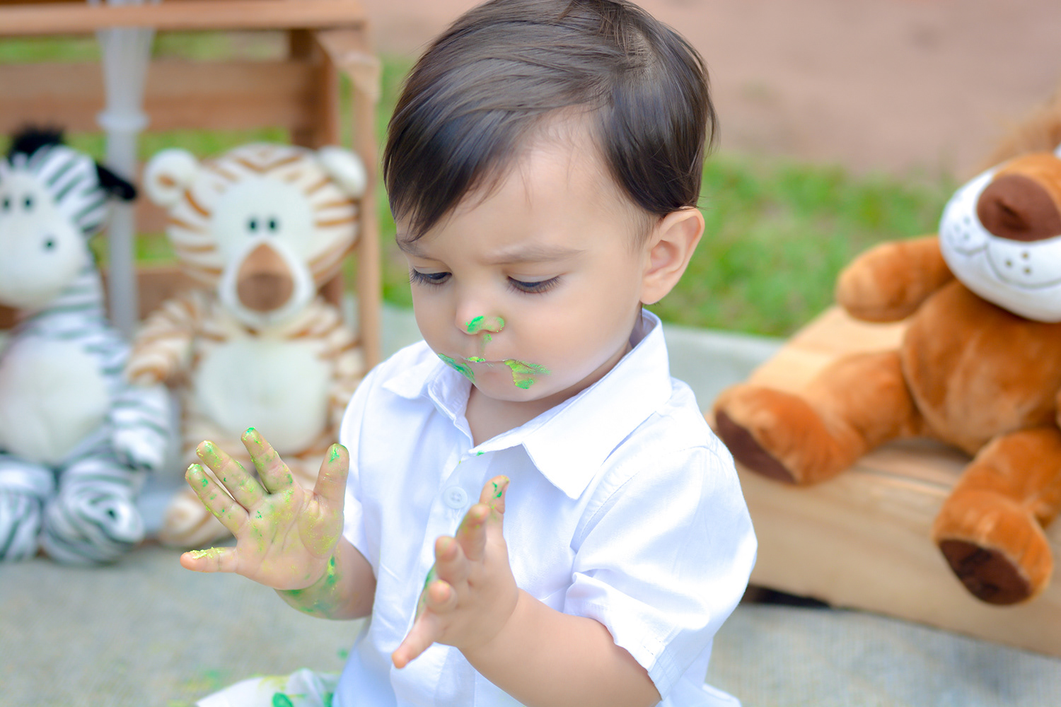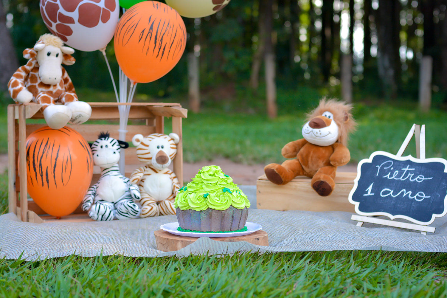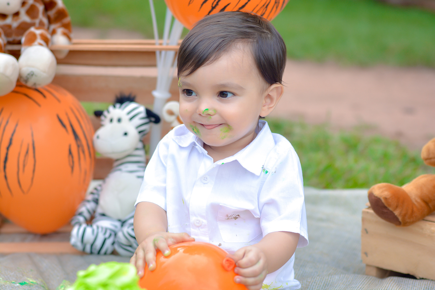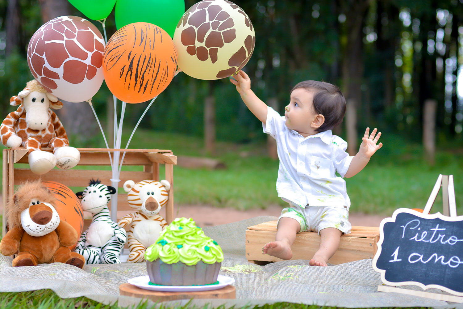 Pietro chegou todo animado na sessão, mas o bolo ele não gostou muito hahahahahhahaha mas ficou lindo nas fotos que foram feitas no Horto Florestal de Limeira/SP, o bolo todo personalizado com o tema safari, combinou super com o cenário e com a festa do seu primeiro aninho.